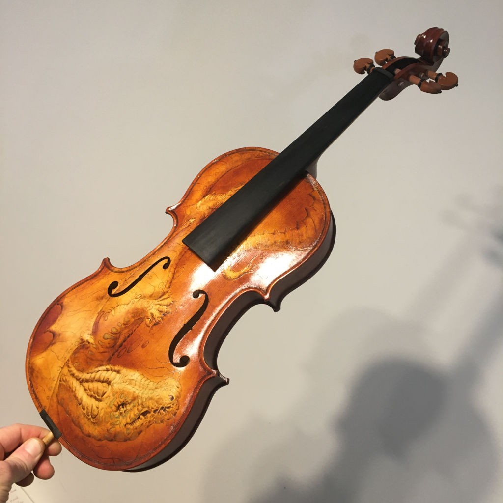 The colour has finished drying, and a final coat was applied. I painted the f-holes and the pegbox black. I cut the slot for the second nut (saddle nut), the fingerboard, and also the main nut. I reamed the peg holes to the proper angle and also the peg hole at the base. I am getting closer.