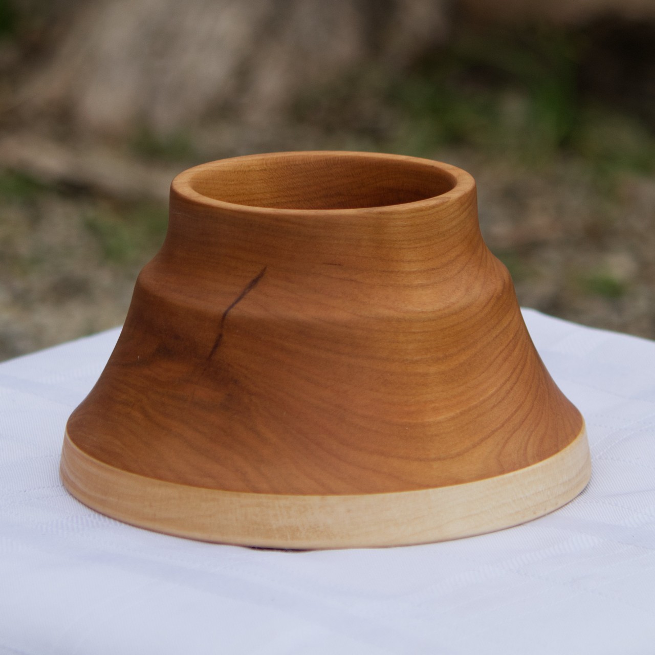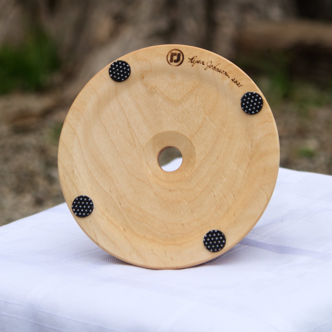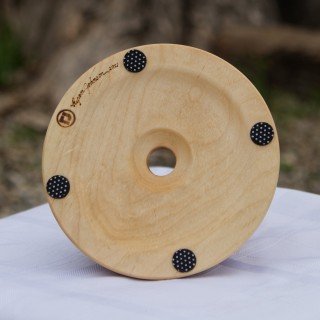 The solution is the cup holders pictured in this blog post. I specifically designed these cup holders to be non-tippable with a non-slip bottom. Now, the cup is stable and looks good. I made the non-slip feet from a sheet of material designed for the purpose. However, because I needed round pads, I sharpened the edge of a 5/8" pipe and punched them out of the sheet, which worked perfectly. To finish the cherry and maple wood, I applied a food-safe walnut oil that protects the wood brings out the color and grain. I enjoy projects where a solution to a problem can also be an esthetic piece of art.